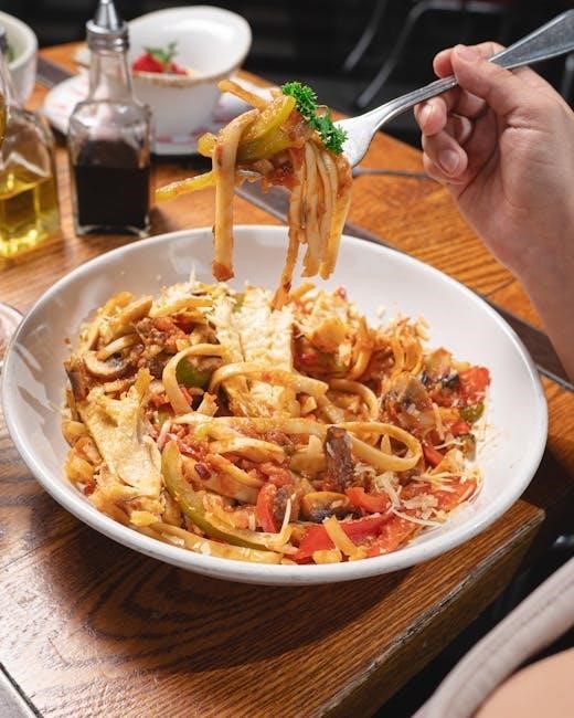 Furthermore, the guide highlights healthier alternatives, such as Salmon Piccata, prompting consideration of nutritional value alongside taste preferences. The PDF provides a clear understanding of each dish’s composition, aiding those with specific dietary needs or fitness goals.